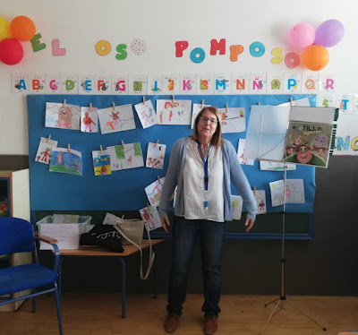 Mi cuentos "El oso Pomposo" y "El Pillo gigantón, han bailado muy felices entre los niños y niñas de Roquetas de Mar en el colegio CEIP Posidonia.